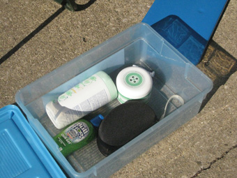 The "Stop Box" contains a few essentials which will need to be handy for Keith's use at every stop -- chamois butter, wet wipes, sunscreen, insect repellent, etc. |