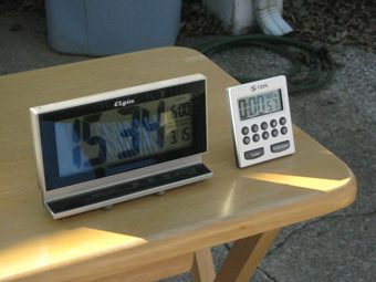 | The two-way radio will help the crew communicate with Keith about the planned stop. Here (at right) during the simulation, Shelia was wearing the headset and could pick up Keith's transmission that he was nearing the pitstop. This sets the crew into action. |