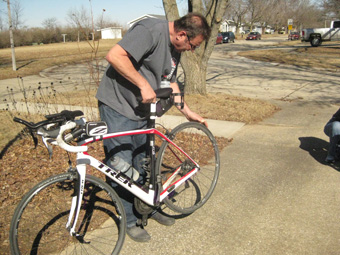 Applying reflective tape to the bicycle is one requirement, and Keith now has all of the required reflective tape on all three bikes and on the three sets of spare wheels. The photo shows the reflective tape on the seat stays, the cranks, the forks, and three strips on each side of each wheel. Every time we get something done, we are one step closer to getting to the starting line of RAAM!