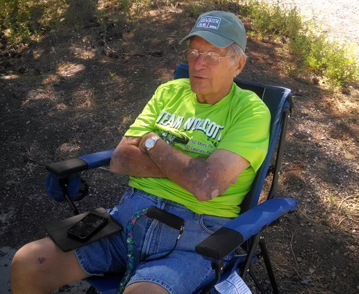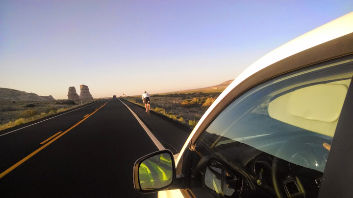 I'm not sure exactly when they stopped, but I'm guessing that it was sometime between 3:30 and 4:00 am Illinois time since I woke for a few minutes around then, checked the Tractalis app on my iPad and saw that #509 wasn't moving. When I got up around 6:00 am, I kept checking it, and -- funny thing! -- around 7:30 am, while I was getting dressed to go to work, I noticed that the tracker moved one-tenth of a mile. I imagined Keith stumbling toward his bike in a hotel parking lot, and lo and behold, two minutes later when Tractalis refreshed the data, #509 was moving at 11 mph. A few minutes later, Keith made an official check-in at the Mexican Hat, UT time station (#12 - checkin at 8:34 RAAM time.)