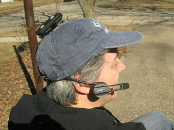 | The two-way radio will help the crew communicate with Keith about the planned stop. Here (at right) during the simulation, Shelia was wearing the headset and could pick up Keith's transmission that he was nearing the pitstop. This sets the crew into action. |