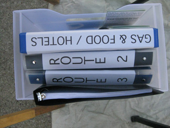 Ellen set up a simulated layout of a support crew van in the driveway, and Keith made repeated loops (meanwhile riding 90 miles) so the crew could practice all the procedures to be done during a roadside stop.