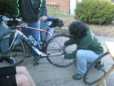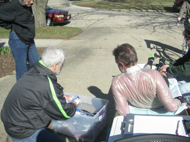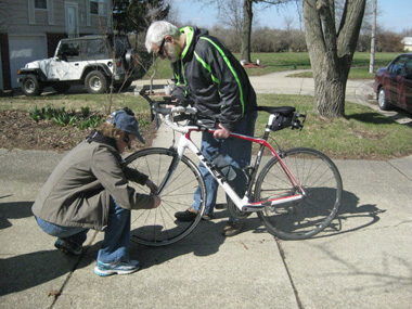 Today, the crew again practiced short pit-stops. While Keith rode 1-mile loops around the neighborhood, the crew readied for his next stop.