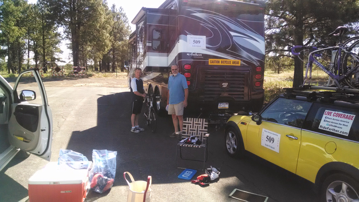 I'm not sure exactly when they stopped, but I'm guessing that it was sometime between 3:30 and 4:00 am Illinois time since I woke for a few minutes around then, checked the Tractalis app on my iPad and saw that #509 wasn't moving. When I got up around 6:00 am, I kept checking it, and -- funny thing! -- around 7:30 am, while I was getting dressed to go to work, I noticed that the tracker moved one-tenth of a mile. I imagined Keith stumbling toward his bike in a hotel parking lot, and lo and behold, two minutes later when Tractalis refreshed the data, #509 was moving at 11 mph. A few minutes later, Keith made an official check-in at the Mexican Hat, UT time station (#12 - checkin at 8:34 RAAM time.)