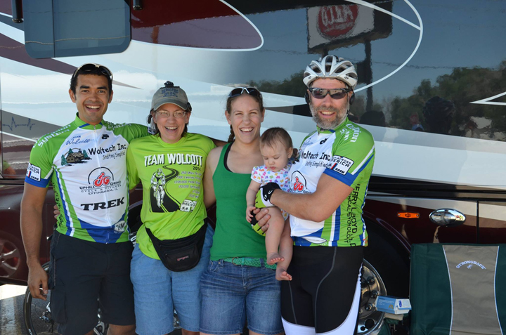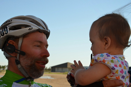 After leaving Walsh, Keith rode on to Ulysses (check in at time station #23 here was at 14:05.) And there was a wonderful Father's Day surprise waiting there for him -- his daughter, Jane, son-in-law Jose and granddaughter Zoe dropped by to cheer him on.