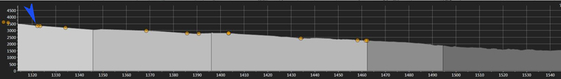 Below is a profile for much of today's route - the image shows the route from just west of time station #23 (Ulysses, KS) to just east of #26 (Pratt, KS.) The blue arrow marks Keith's location at 11:45 RT on June 15. Much nicer, yes?